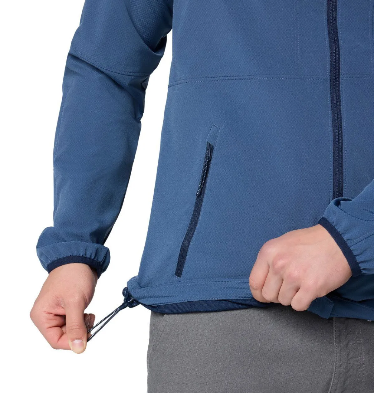 Denne Columbia herre-softshelljakke beskytter dig mod skiftende vejrforhold med en vand- og smudsafvisende finish.Den justerbare hætte, komfortable hagebeskytter og snøre i kanten sikrer en fleksibel pasform og komfort hele dagen.Den lynlåslukkede ærmelomme og håndlommer giver sikker opbevaring af dine vigtigste ting, mens du er på farten.