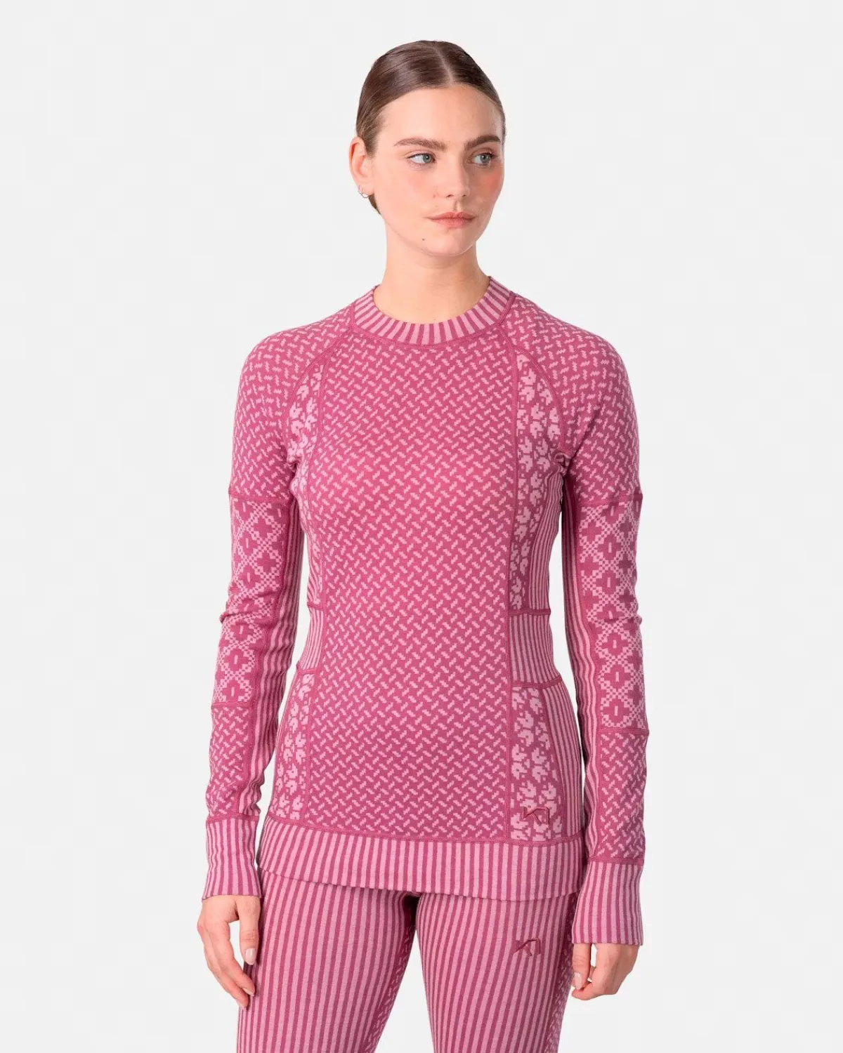 Kari Traa Smekker skiundertrøje er et let, merino baselayer med en luksuriøs følelse.Paneler af Jacquard-strikkede mønstre i forskellige designs skaber flatterende linjer, mens uldens glatte blødhed, naturlige varme og lugthæmmende materiale holder dig komfortabel og tør.