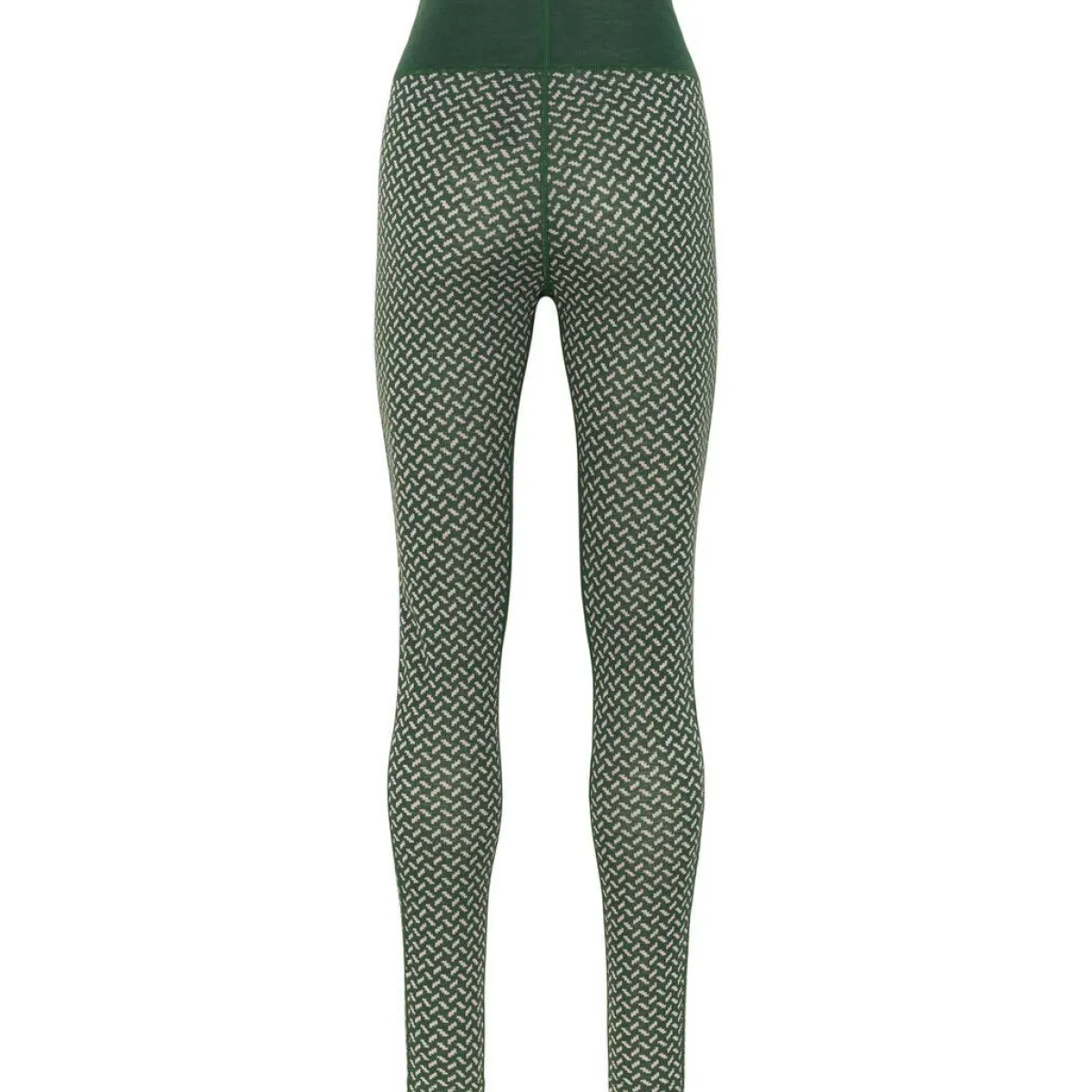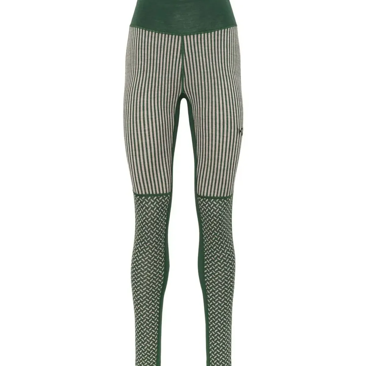 Det lette og åndbare materiale isolerer effektivt – selv i fugtig tilstand – og er samtidig naturligt lugtresistent. Jacquardstrikkede paneler i forskellige mønstre giver et flatterende og feminint udtryk, mens den høje talje og brede linning sikrer ekstra komfort og dækning.