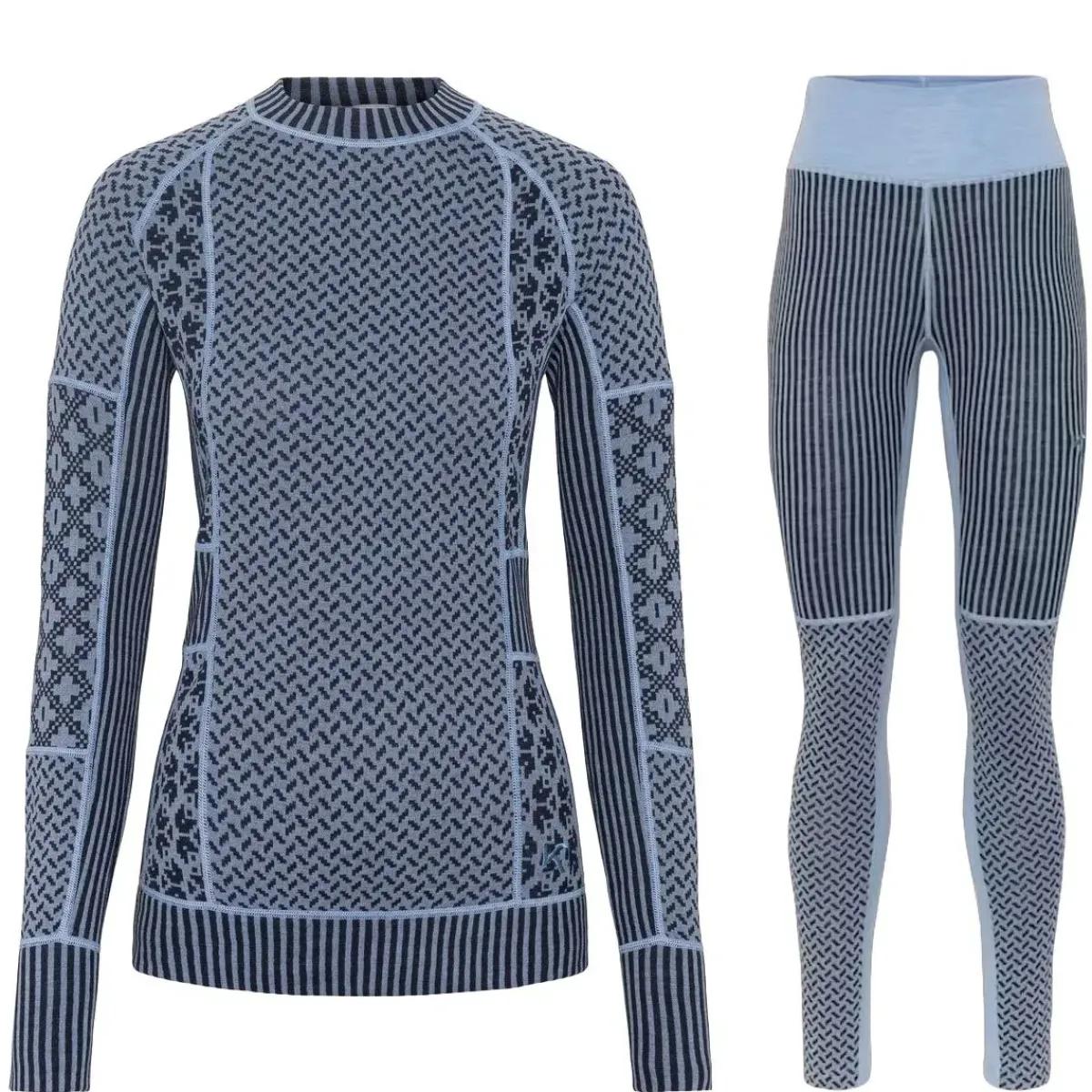 Kari Traa Smekker Skiundertøjssæt til damer er et luksuriøst baselayer i 100% merinould, bestående af langærmet skiundertrøje og high waist skiunderbukser.