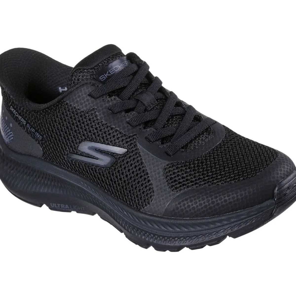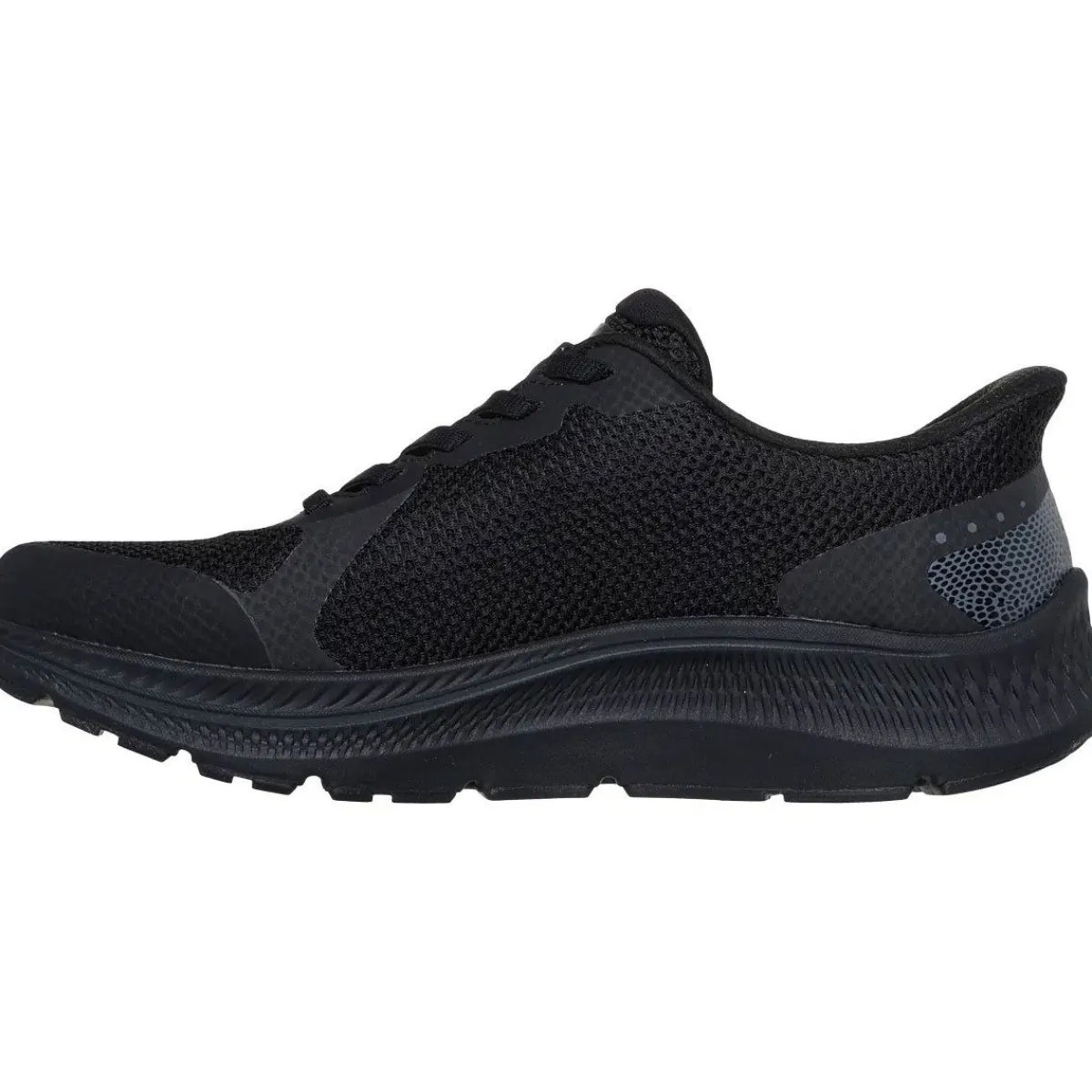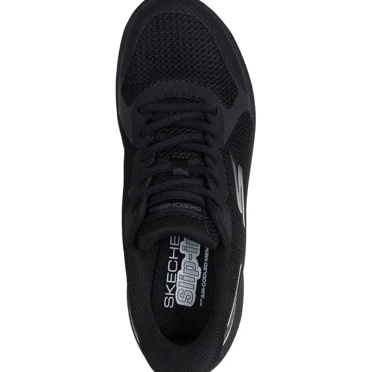 Den åndbare overdel i mesh med elastiske snørebånd giver en fleksibel pasform, mens den polstrede Skechers Air-Cooled Memory Foam® indersål sikrer blød komfort, trykaflastning og ventilation.