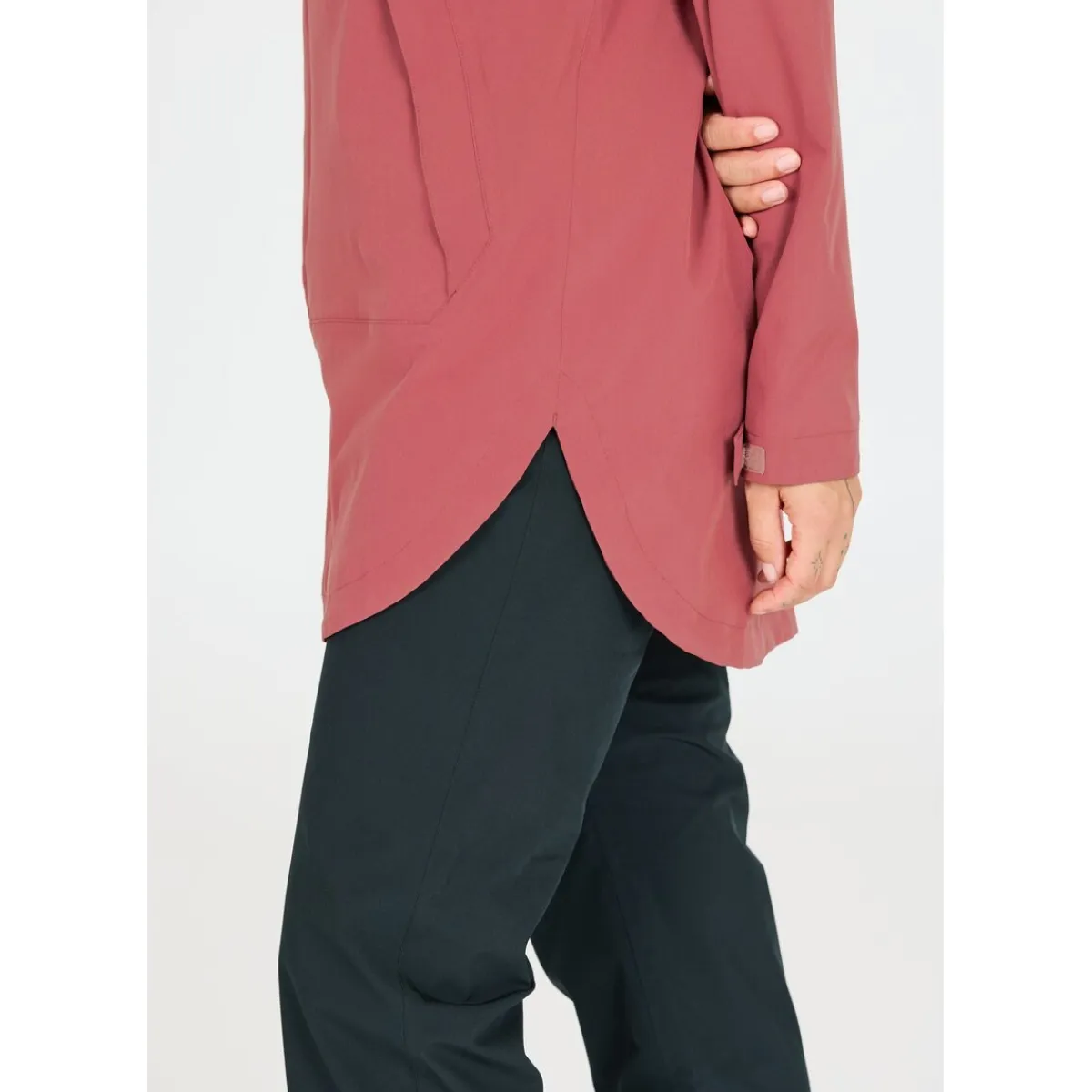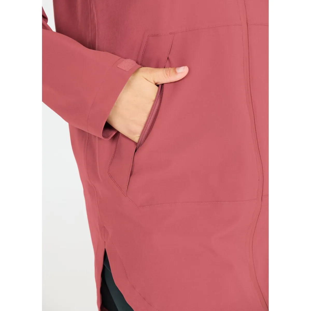 Både hætte og søm kan justeres, og de elastiske ærmeafslutninger sikrer en perfekt pasform. For øget sikkerhed i dæmpet lys er den langskårne jakke udstyret med reflekterende detaljer.