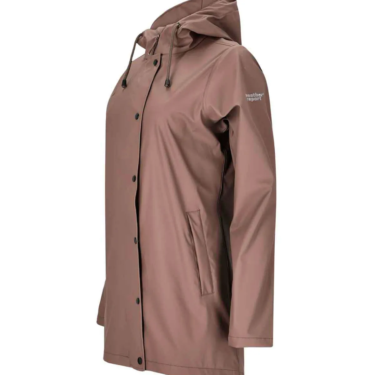 Med Petra-regnjakken til kvinder fra Weather Report fra Danmark kan du trygt lade paraplyen blive hjemme. Den vand- og vindtætte regnjakke, fremstillet af polyester med PU-belægning, beskytter dig mod regn og dårligt vejr. PU-belægningen er miljøvenlig og PFC-fri. De svejsede sømme gør jakken 100% vind- og vandtæt. Det komfortable snit giver maksimal bevægelsesfrihed. Hætten har en praktisk snøre, og ærmerne kan justeres med trykknapper. Det reflekterende logo på ærmerne giver ekstra sikkerhed i mørket. Materiale: 100% polyester PU (uden blødgørere, ftalatfri, PFC-fri).