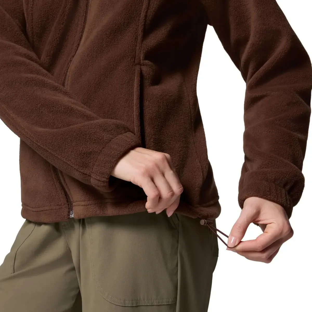 Denne fleecejakke er perfekt til det kølige vejr, hvor du har brug for ekstra varme. Den bløde, isolerende kvalitet kombineret med en justerbar indvendig snøre sikrer en tæt og behagelig pasform. Praktiske lynlåslommer giver sikker opbevaring af småting, hvilket gør jakken ideel til både vandring og hverdagsbrug.