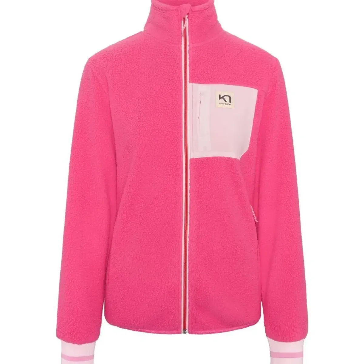 Blød og varm midlayer fra Kari Traa. Ribbede manchetter og sikre lommer gør den perfekt til udendørsaktiviteter. En sporty, men alligevel afslappet stil, der vil løfte din garderobe væsentligt.