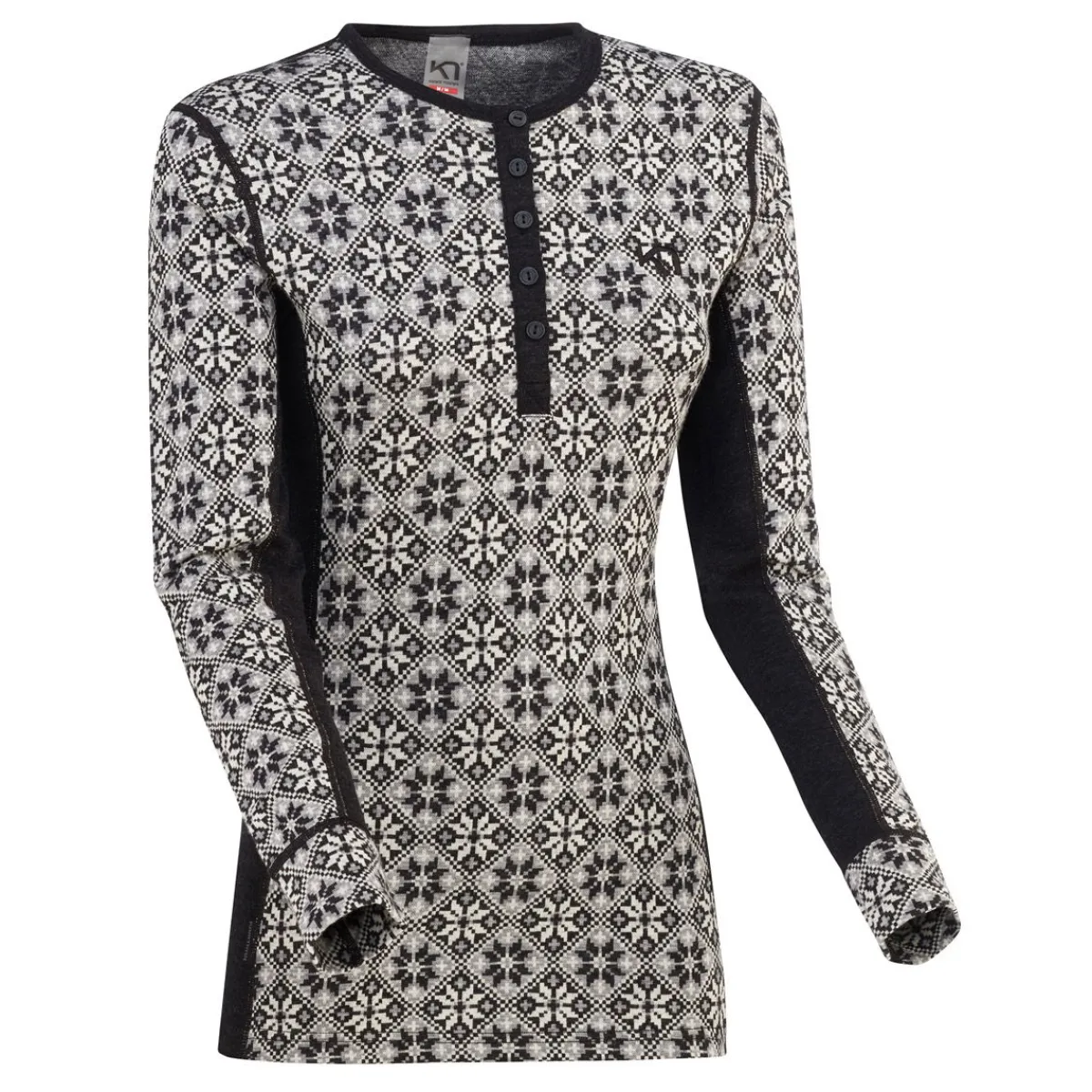 Denne Rose skiundertrøje fra Kari Traa er lavet med 5 knapper der afsluttes ved brystet. Det er en varm skiundertrøje der sikrer dig en optimal komfort, ogsom er super smart og moderigtig i Kari Traa’s altid flotte farvesammensætning og mønstre.
