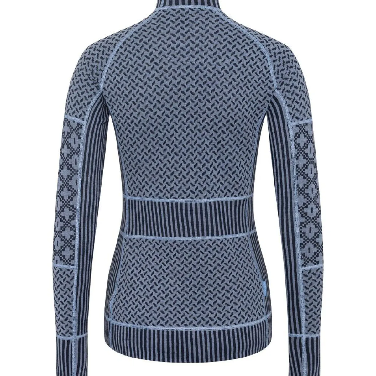 Jacquardstrikkede paneler i forskellige mønstre skaber et flatterende, feminint look, mens underarmspaneler giver fri bevægelighed. Fremstillet i etisk, sporbar RWS-merinould.