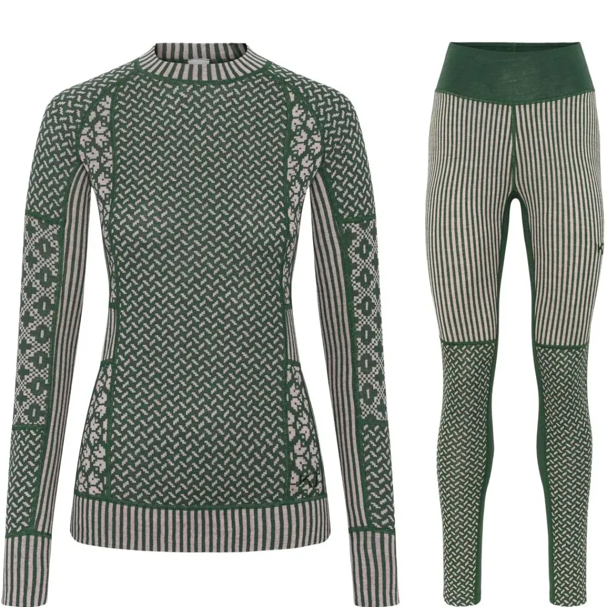 Kari Traa Smekker Skiundertøjssæt til damer er et luksuriøst baselayer i 100% merinould, bestående af langærmet skiundertrøje og high waist skiunderbukser.