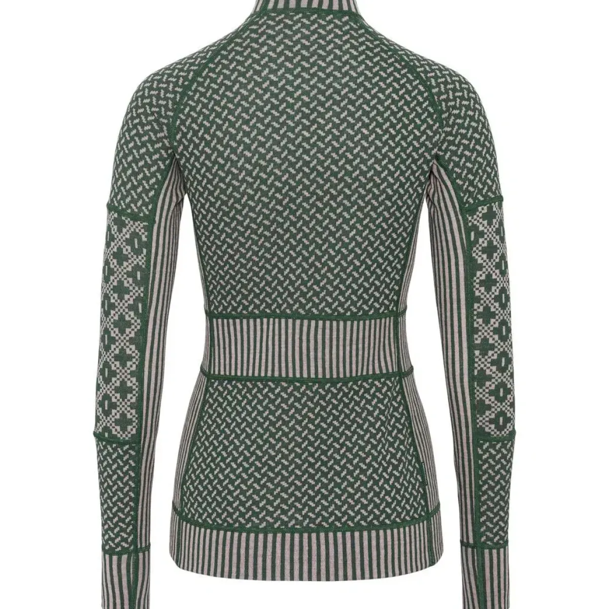 Det nordisk-inspirerede jacquardmønster giver et feminint og moderne look, mens slim fit pasform, underarmspaneler og brede linning sikrer bevægelsesfrihed og høj komfort.