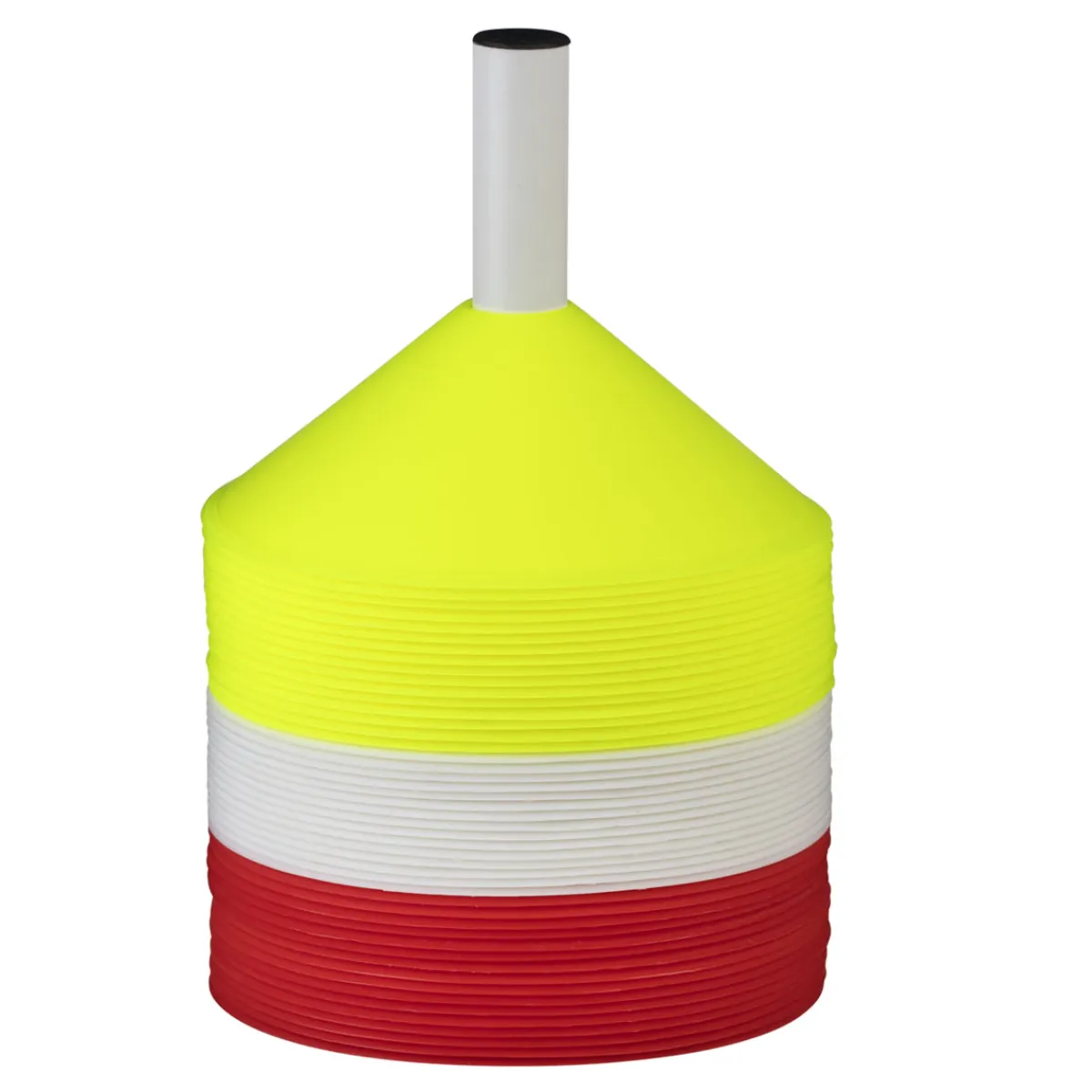 Markeringssæt bestående af 16 gule, 16 hvide og 16 røde toppe på en praktisk holder.