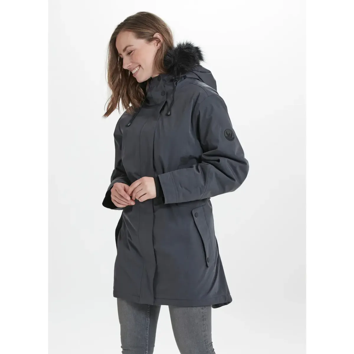 Lang flot og stilren vinterparka til damer. Nala jakken er velegnet til de kolde og våde vintermåneder.Udover at være en flot jakke, så er ydermateriale vandtæt, og har et vandsøjletryk på 10.000 mm, så den er anvendelig i regn og slud.